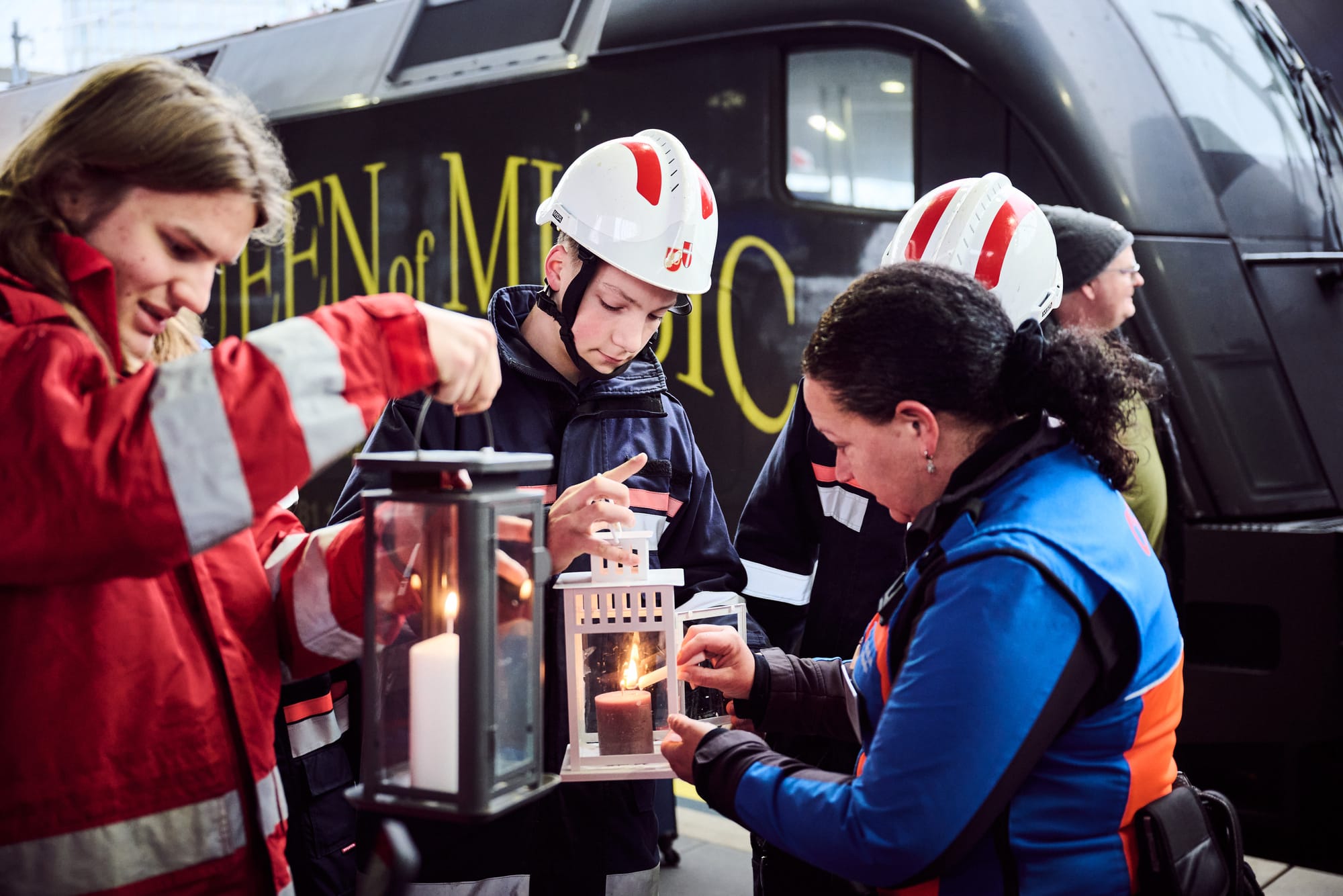 Begleitet wurde die Ankunft von Delegationen des Roten Kreuzes und der Feuerwehrjugend Wien, die traditionell an der Weiterverteilung des Lichtes beteiligt sind. Für den sicheren und sorgfältigen Transport an Bord des Zuges sorgte die ÖBB-Zugbegleiterin Fanni Stockerer.